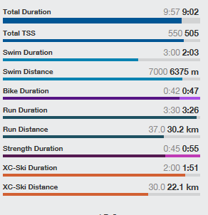 Kevyt viikko päättyi sunnuntain pitkään juoksuun ja 400 metrin uintitestiin märkäpuvulla.