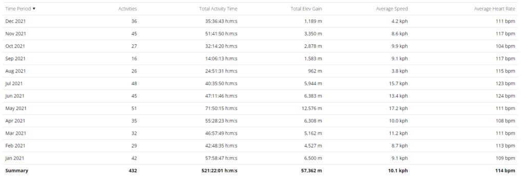 Viime vuoden 521 toteutunutta tuntia on oikein hyvä saldo huomioiden loppukesän pakollisen tauon ja keventelyn.